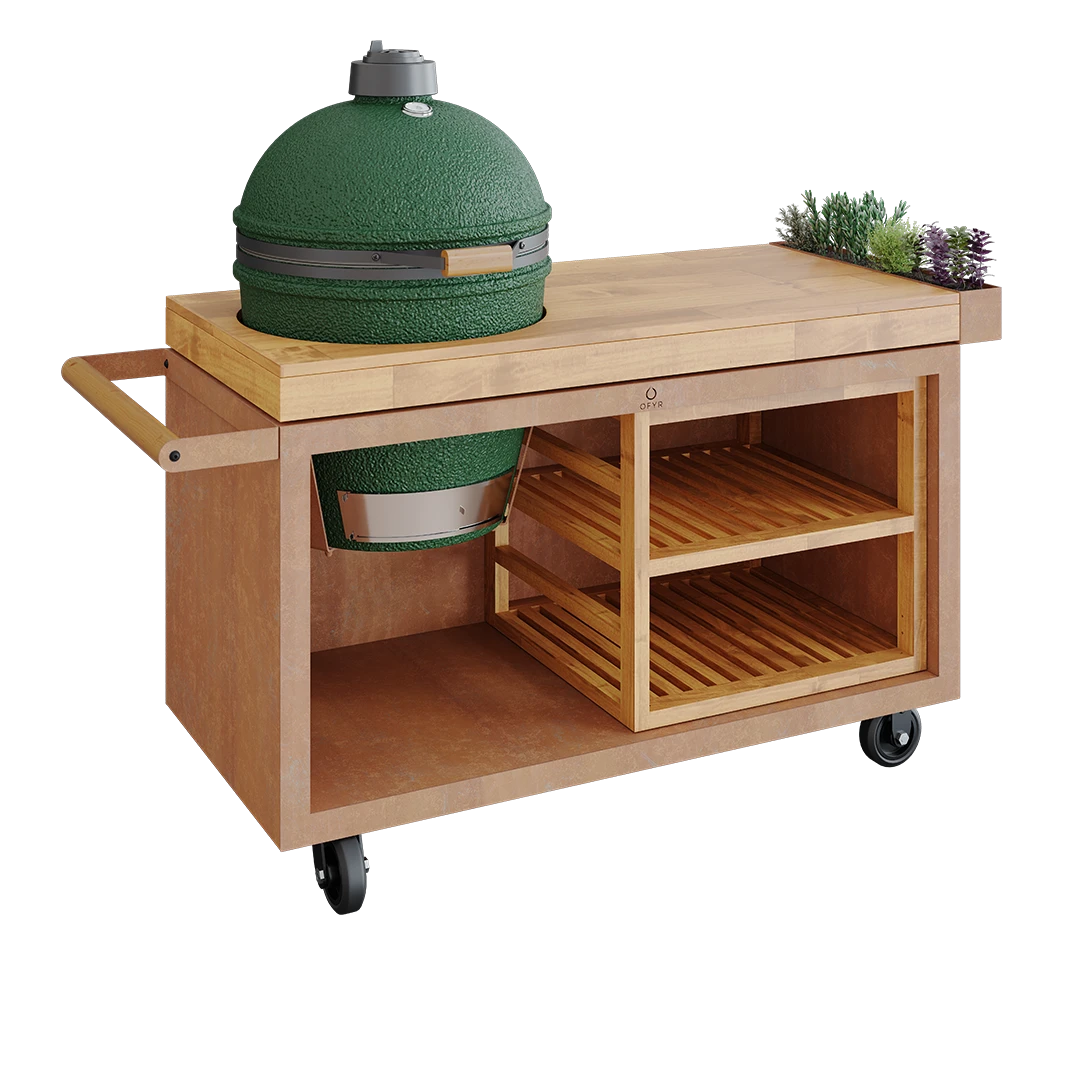 Met deze prachtig afgewerkte teak houten inserts transformeert u de opslagruimte van uw toestellen in een volwaardige open of gesloten kast, waarin u vele zaken kunt opbergen. Ook optisch geeft deze insert een extra cachet aan uw meubel. De Insert Small (met of zonder deurtje) is bedoeld voor de OFYR Mise en Place Table PRO 65 toestellen, OFYR Kamado Table PRO 65 toestellen en de Ofyr Island Classic Pro toestellen.
